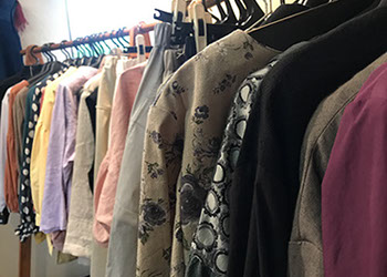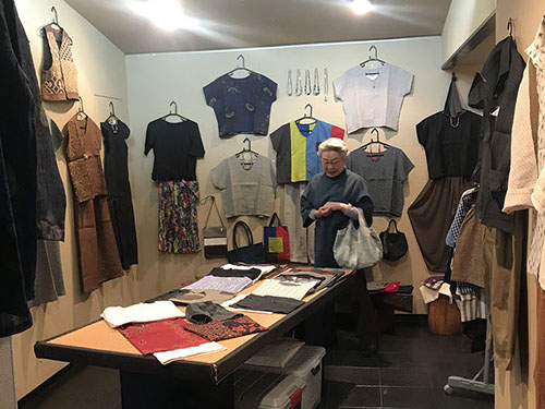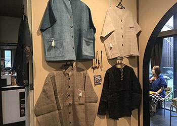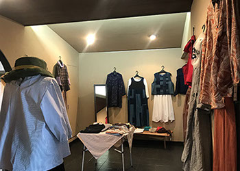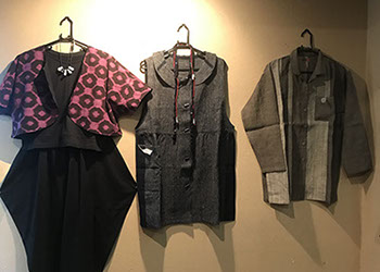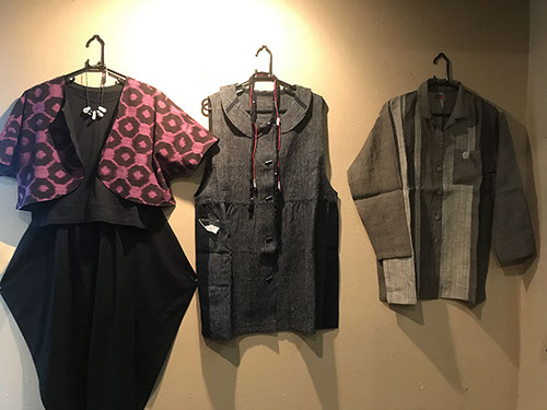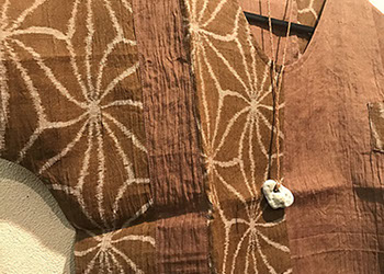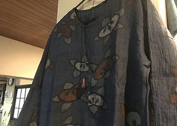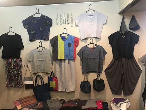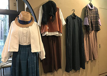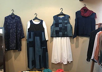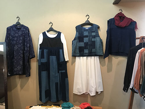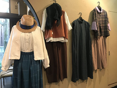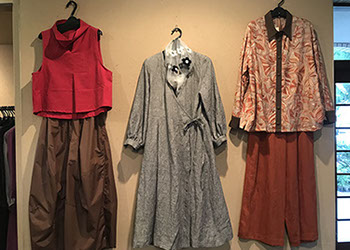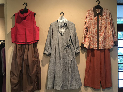 20年前から服作りにとり組んでいる「池田道子」はゆったりとしたデザインのブラウス、ワンピース、スカートを発表した。
