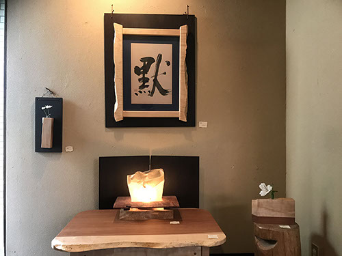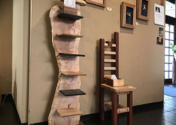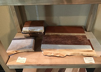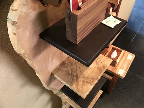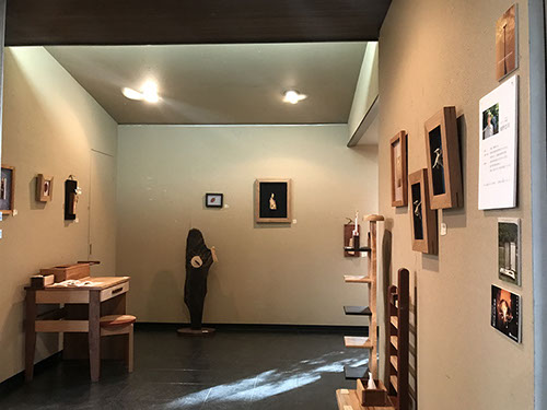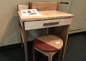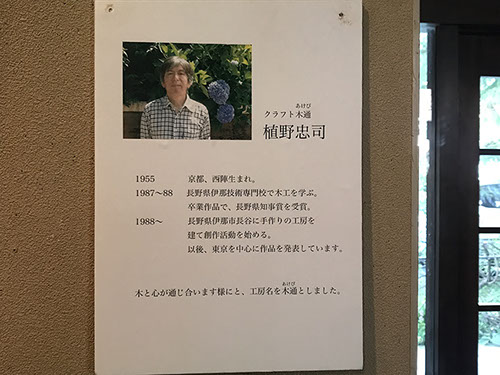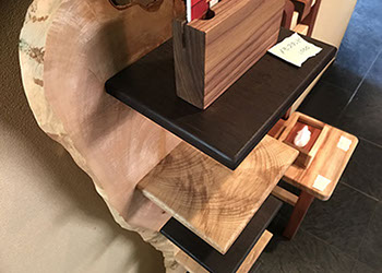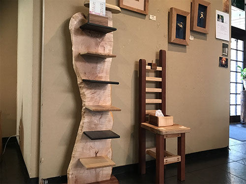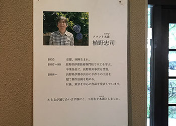 座卓、机、椅子、積み木などを素材そのものの風合を生かしながら制作した家具のなかに植野忠司のつぶやきを感じた