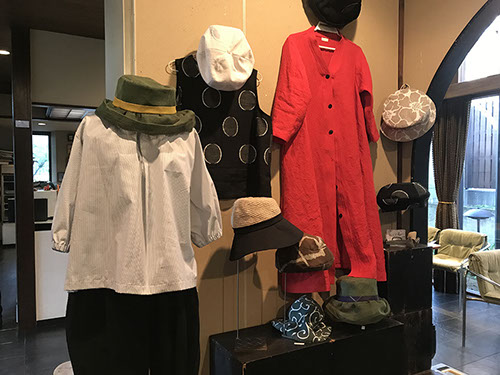 水玉、花、唐草模様、かやを使った「のだまりこ」の製作した帽子が初夏の風のように爽やかだった。