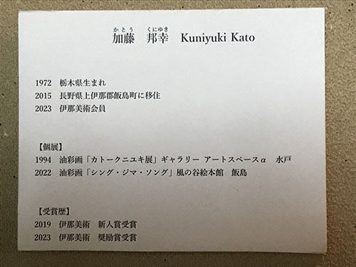 伊那美術展に参加しながらの作品を中心にしての展示会である。