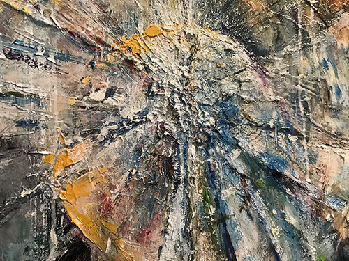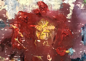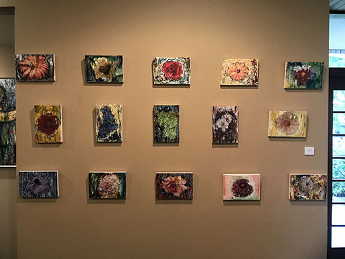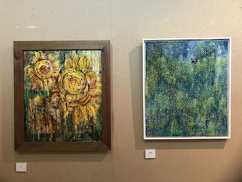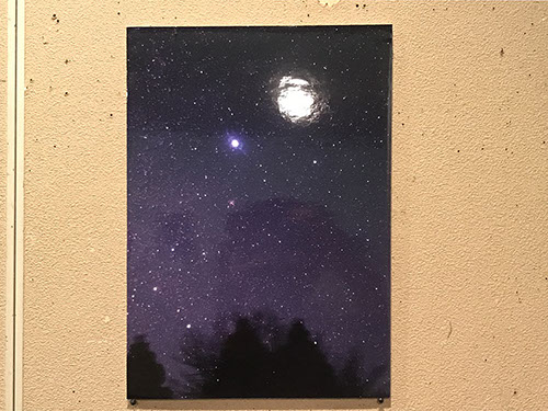 少し絵画から遠ざかっていたが、移住後に制作を再開した。そのきっかけは伊那谷の自然だろうか?わずかな光を受けてたたずる白い花だったり、画面いっぱいのヒマワリだったり。自由で力強い風だったり…。自然をモチーフにした作品が多い。