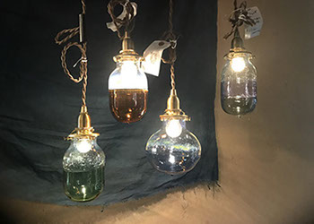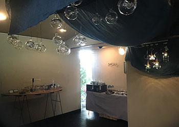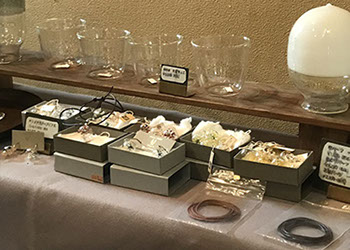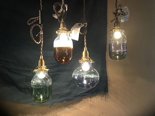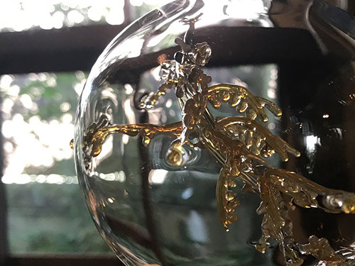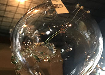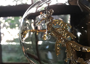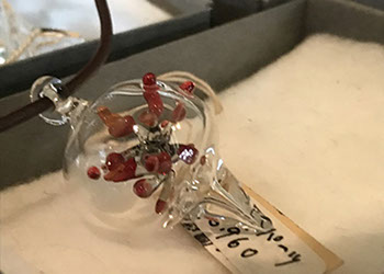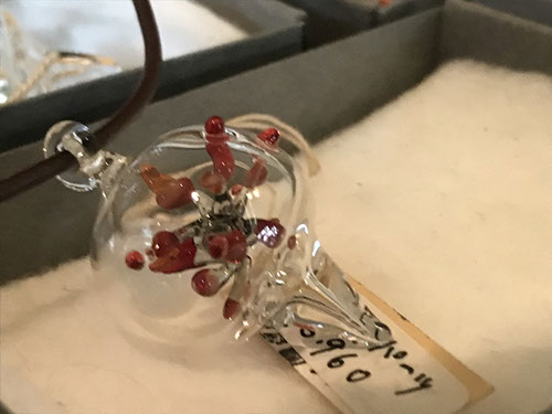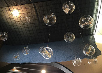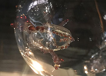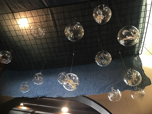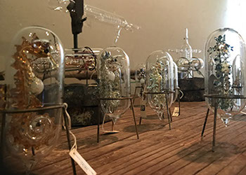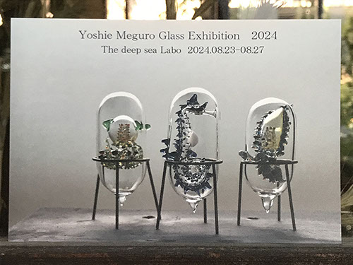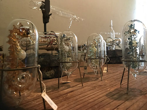 透明なガラスの中にガラスの深海生物を閉じ込めたオブジェを展示。