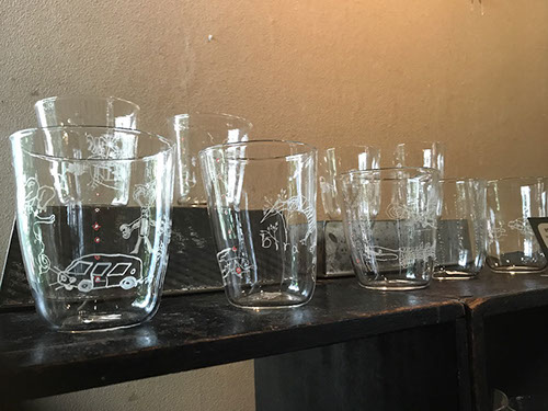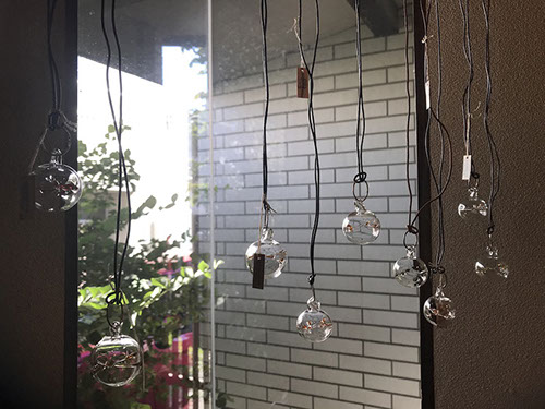 カラフルな吸盤の付いた足をいっぱいに広げたイカ、クラゲ、トゲをもつウニの子どもなどがガラス中で泳いでいる姿が楽しい。年ごとにのびやかになてくるガラスと生き物たち。来年はどんな生き物をみせてくれるだろうか。