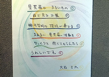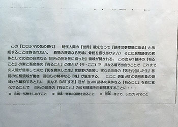 表現するのではなく物と人との出会いの物をつくり、良い、悪いという認識でなく身体で感じることを大事と言っている。