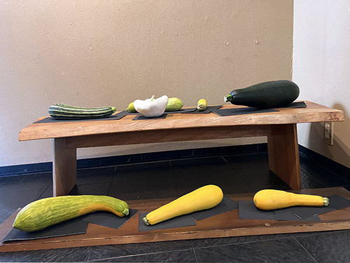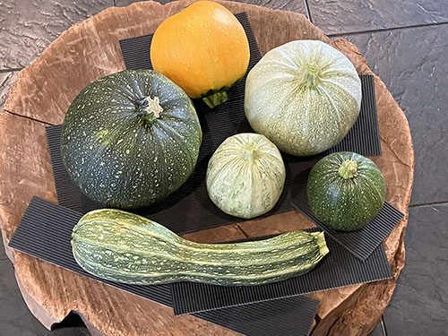 2016年より毎年開催している「スッキーニ展」も早いもので第10回目となりました。空梅雨かと思ったらゲリラ豪雨のようなまとまった雨が短時間に降ったり、気温が高すぎたりと、育てる上でうまくいかないこ事もありますが、個性あふれるスッキーニたちをお楽しみください。